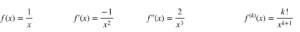 由 f(x) = 1/x 生成的泰勒级数可以通过首先对函数求导并找到第 k 阶导数的一般表达式来获得。