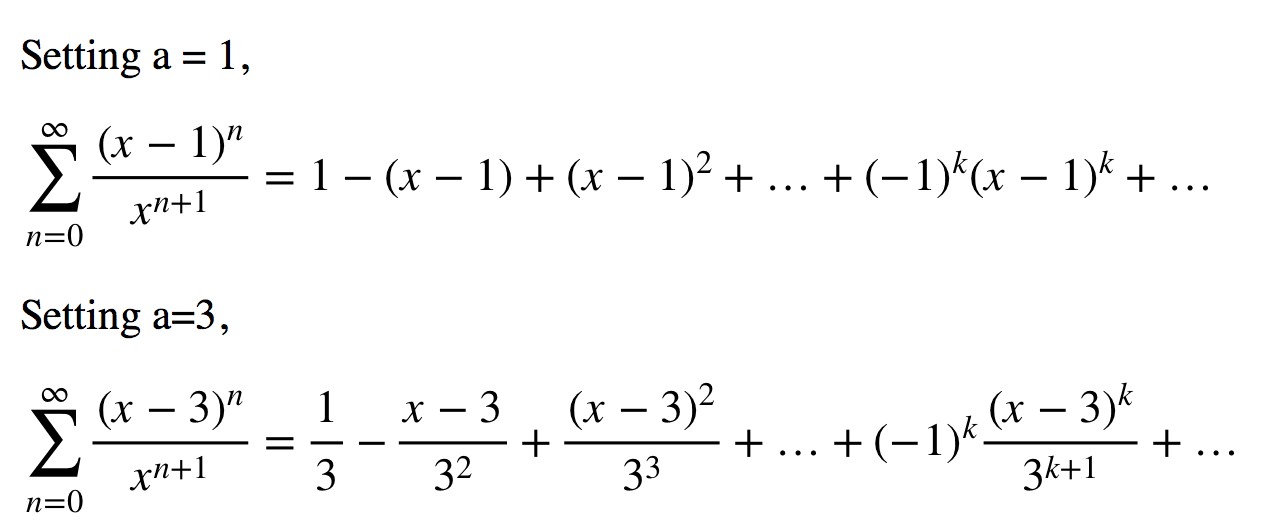 以下是一个以 x=a 为中心,常数系数为 c_0, c_1 等的幂级数。