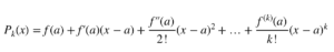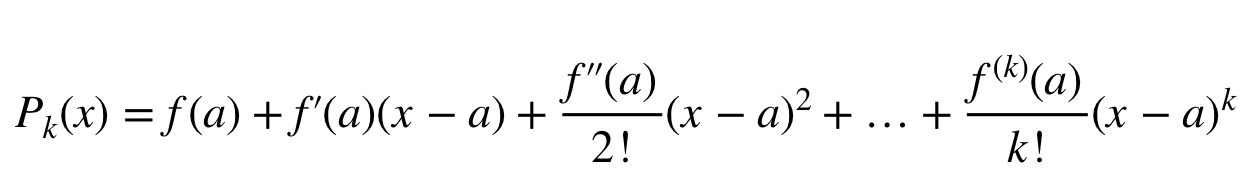 由 f(x) 在 x=a 处生成的 k 阶泰勒多项式由以下公式给出: