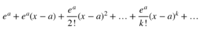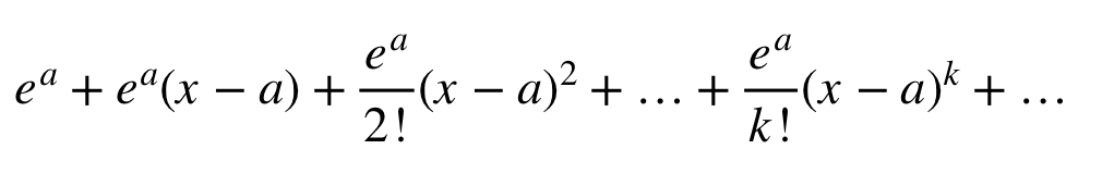 我们来看函数 g(x) = e^x。注意到 g(x) 的 k 阶导数也是 g(x),g(x) 在 x=a 附近的展开式由以下公式给出: