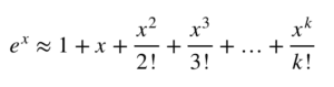 为函数 e^x 在 x=0 附近生成的 k 阶多项式由以下公式给出: